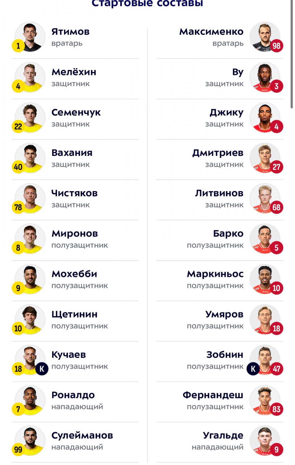 На данный момент "Ростов" идет на 10-м месте с 25 очками, "Спартак" располагается на шестой строчке с 41 баллом.