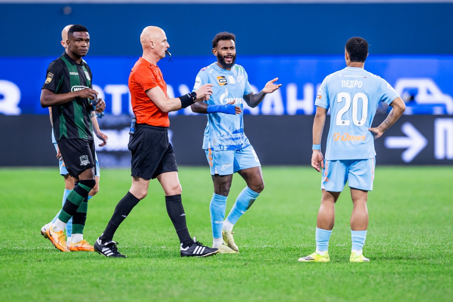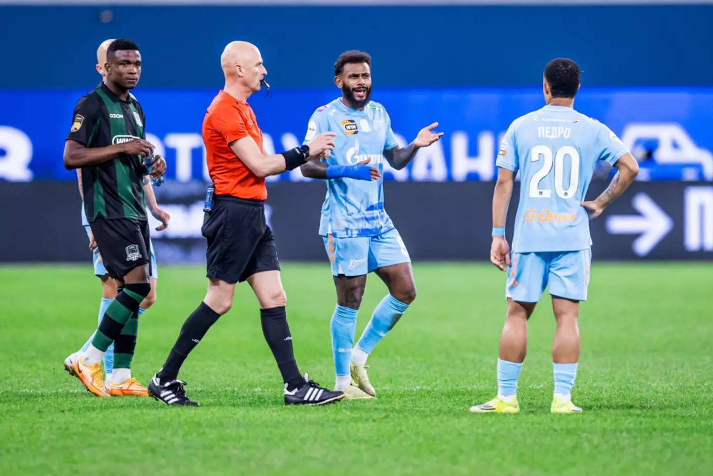 Речь идёт о красной карточке полузащитника питерцев Педро, показанной на 79 минуте за нарушение футболиста на хавбеке и капитане краснодарцев Эдуарде Сперцяне.