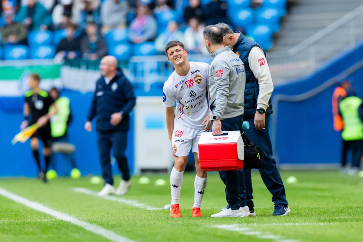 Футболист "армейцев" Кирилл Глебов был заменен в конце первого тайма из-за повреждения мышц задней группы бедра.