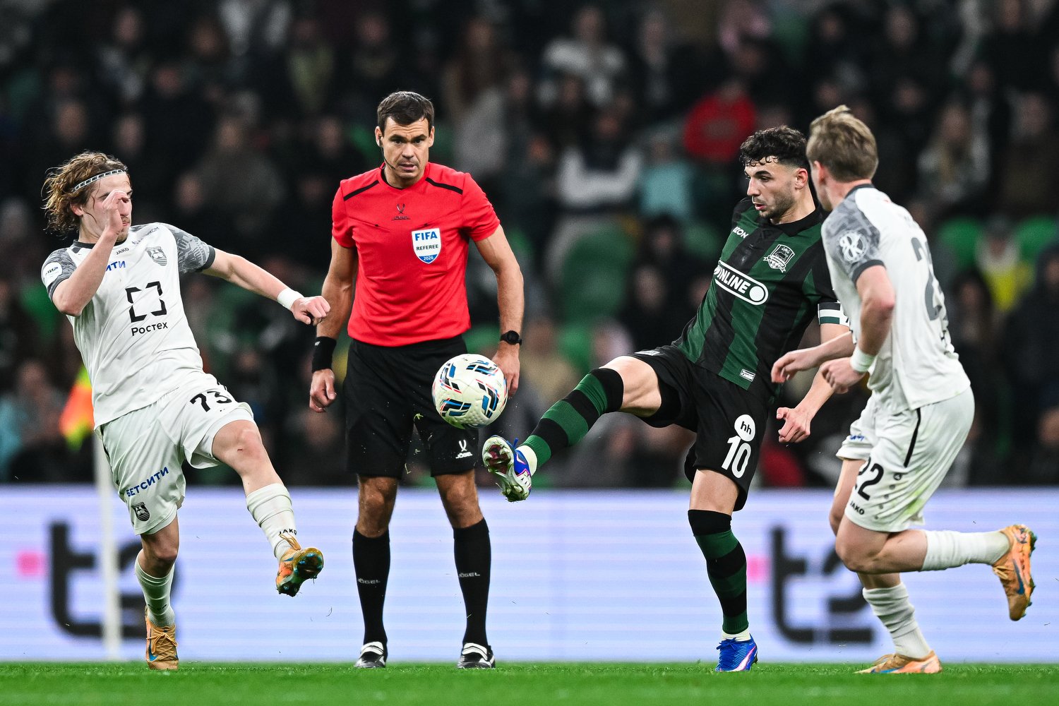 В конце первого тайма мяч попал в руку футболиста "Краснодара" Лукаса Оласы. Главный арбитр Кирилл Левников не стал назначать пенальти.