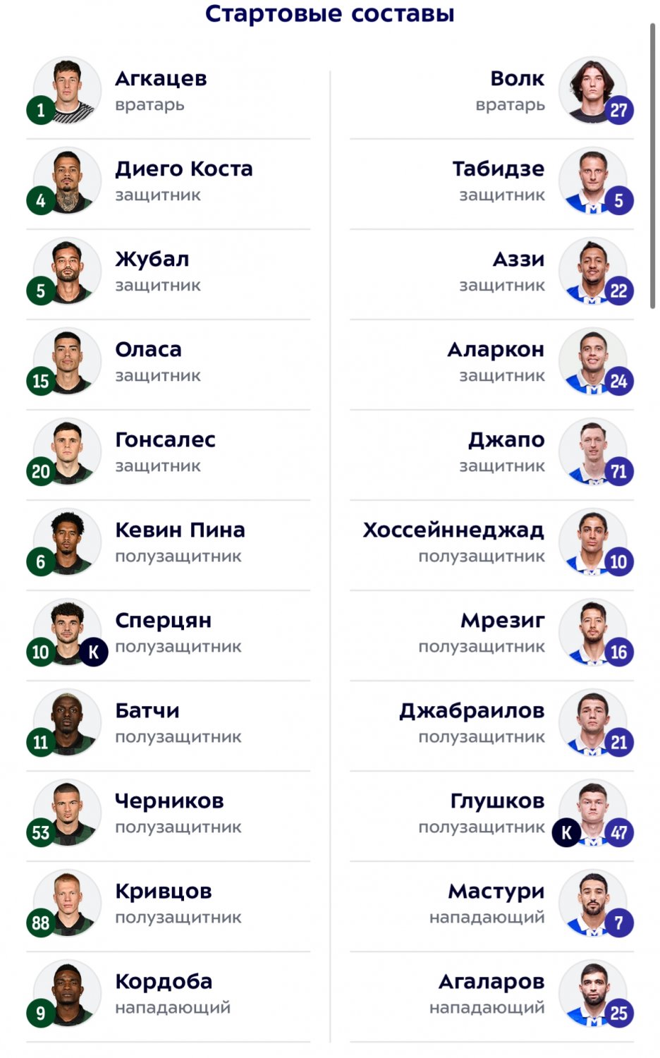 "Краснодар" - "Динамо" Махачкала: стартовые составы на матч 27-го тура РПЛ Сегодня, 15:47 "Краснодар" и "Динамо" Махачкала объявили стартовые составы на матч 27-го тура РПЛ. Фото: официальный сайт РПЛ Матч начнется в 17:00 по московскому времени на стадионе "Ozon Арена". Встречу обслужит судейская бригада Ивана Абросимова."Краснодар" возглавляет турнирную таблицу с 57 очками, "Динамо" занимает 14-е место с 24 баллами. Подписывайтесь на новости футбола от Rusfootball.info в Telegram, Яндекс.Новостях и Гугл.Новостях. Все главные и интересные новости тут Гугл.Новости Яндекс.Новости Телеграм Краснодар Динамо Мх