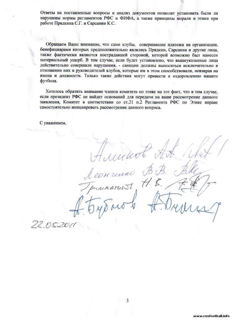 «В связи с недавней публикацией в прессе открытого обращения ряда околофутбольных функционеров к президенту РФС и членам Комитета по этике Профессиональный футбольный клуб ЦСКА считает необходимым заявить следующее: мы полностью поддерживаем Сергея Прядкина в его деятельности на посту президента Российской футбольной премьер-лиги и выражаем ему свое абсолютное доверие. Что касается намерений авторов обращения очернить его деятельность и моральный облик, то они, на наш взгляд, совершенно неприемлемы. Особенно недостойными выглядят попытки скомпрометировать Сергея Геннадьевича, используя детали его личной жизни. Сергей Прядкин был и остается компетентным руководителем, который вносит большой вклад в развитие отечественного футбола».