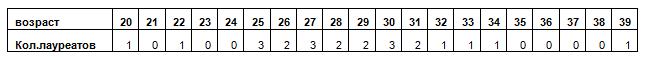 Количество лауреатов по возрастам выглядит следующим образом:
