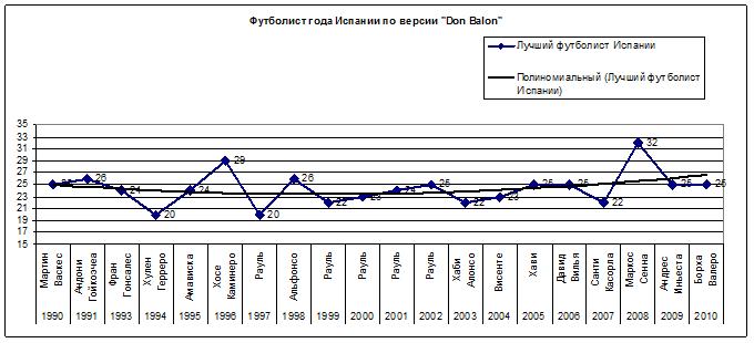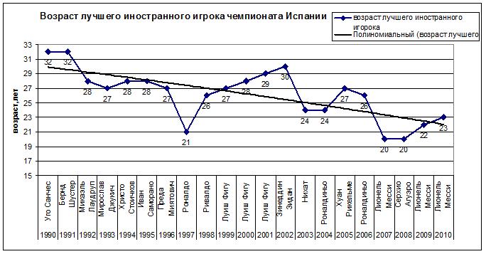 Но скорее всего это объясняется определением Лучшего игрока испанского чемпионата изданием Don Balon. В данной версии диаграммы приведён средний возраст Лучшего испанского игрока чемпионата. Если же принять за основу версию того же Don Balon но уже Лучшего иностранного футболиста сезона в Испании, то всё становится более логичным: