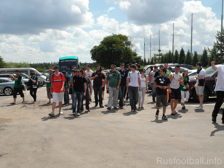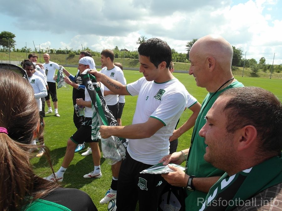 Болельщики приехали на встречу примерно в 10:30 утра, причем для этих целей клуб им выделил специальный автобус, который и привез большинство поклонников краснодарского клуба из города. Надо сказать, что база находится немного в далеке от города, и добраться до нее можно лишь на своем автотранспорте, что некоторые болельщики и сделали.