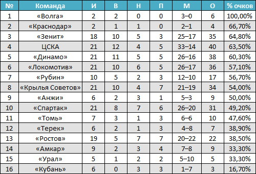 Статистика игр клубов Премьер-лиги в стартовых матчах чемпионатов России