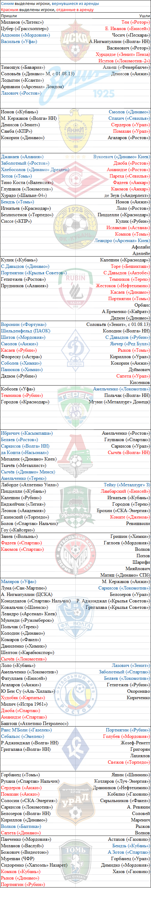 Таблица трансферов Премьер-лиги