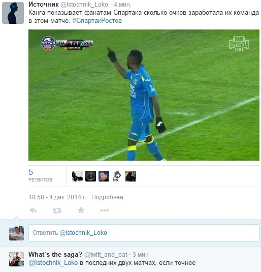 Далее пришло время Канги. Вчера я отмечал, что 5 участников краснодраского дерби схватили дисквалификационные карточки. Выходить на поле в следующем туре, похоже, очень не хотелось и Гуелору Канге, который для верности показал сразу два фака болельщикам и попробовал схватить красную уже перед самым своим уходом, подравшись с Глушаковым.