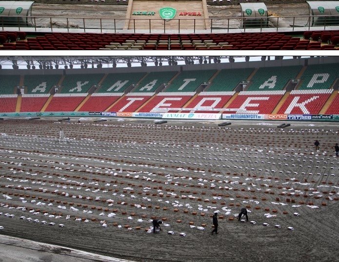 У кого-то может возникнуть вопрос о том, почему замена поля проводится зимой. Отвечу так - летом в перерыве между чемпионатами бывает невыносимая жара, и мы еще в прошлом году видели, что в такую погоду даже восстановить уже существующее поле невозможно.