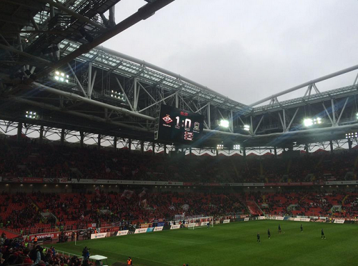 А ещё Алексея Парамонова с 90-летием поздравили. Единственное, что могло вызвать улыбку на лице ветерана в этот день - стеночка Промеса, который против такого оппонента, как Жоаозиньо, мог бы поактивнее сыграть, с Денисом Давыдовым. А выкати Ари тогда мяч Широков, всё могло бы быть как обычно - две предыдущие встречи между командами, напомню, со счётом 4:0 заканчивались. Не надо говорить в чью пользу. "Столичное проклятие" "Краснодара" снято в день первого поражения "Спартака" на новом стадионе. С которым табло "Открытие-Арены", однако, не могло смириться...