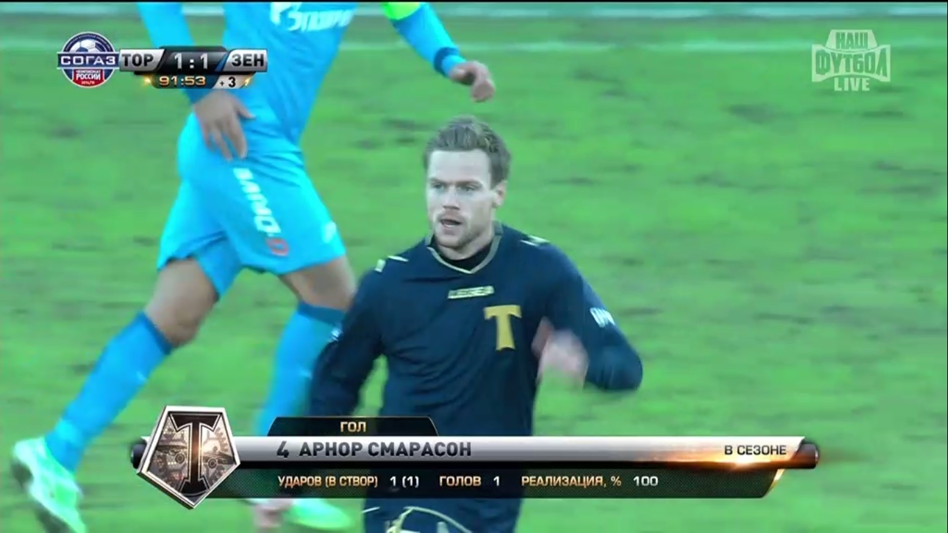 И все бы хорошо, но на последних минутах не понятно, кто должен был опекать Смарасона, и чем занимались в это время защитники. Нету поспешно пытался перебежать от Комбарова к исландцу, Смольников также стремился накрыть удар торпедовца, но безуспешно.