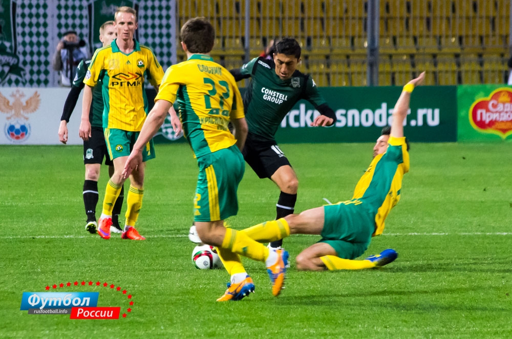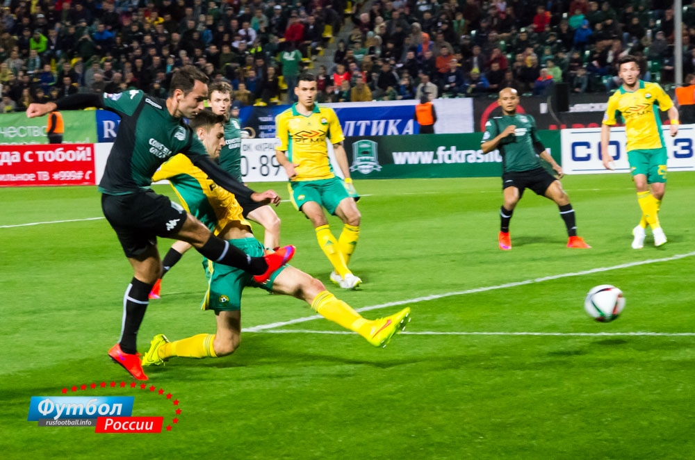 Фоторепортаж с матча "Краснодар" - "Кубань" 12 апреля 2015 11:51 В матче 23-го тура чемпионата России "Краснодар" в статусе хозяина встречи добился победы над "Кубанью". Представляем Вашему вниманию фотоотчет встречи. Rusfootball.info Подписывайтесь на новости футбола от Rusfootball.info в Telegram, Яндекс.Новостях и Гугл.Новостях. Все главные и интересные новости тут Гугл.Новости Яндекс.Новости Телеграм Кубань Краснодар