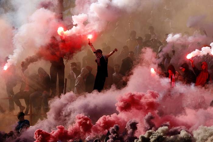 Как сообщает агентство Рейтер, начало матча было отложено на 45 минут, после того как фанаты "Црвены Звезды", располагавшиеся на северной трибуне, закидали полицейских вырванными креслами и файерами. По словам представителя NSP, в ходе столкновений один из полицейских получил ожог лица, двое получили ножевые ранения рук, а всего пострадали 35 сотрудников правоохранительных органов.