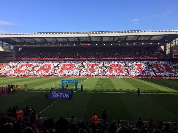 Болельщики "Ливерпуля" устроили красочный перфоманс в честь капитана команды Стивена Джеррарда.