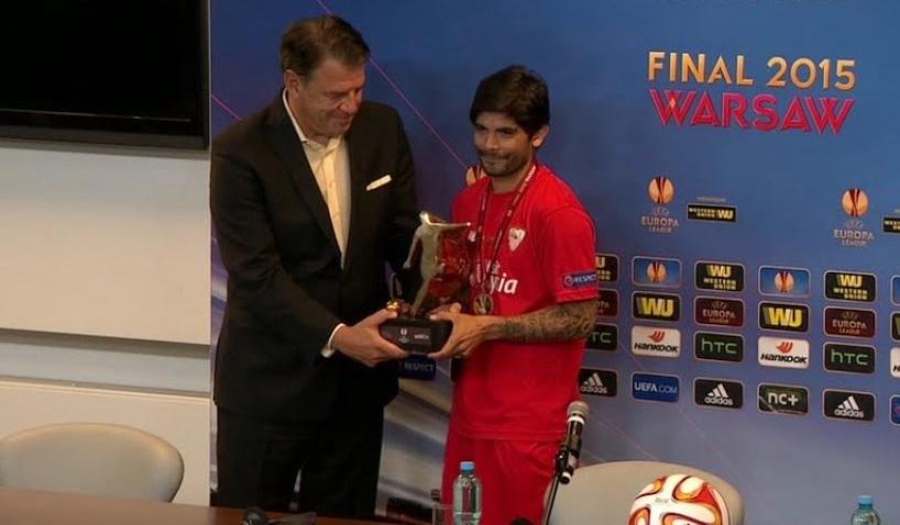 Полузащитник "Севильи" Эвер Банега награждён как лучший игрок финального матча Лиги Европы.
