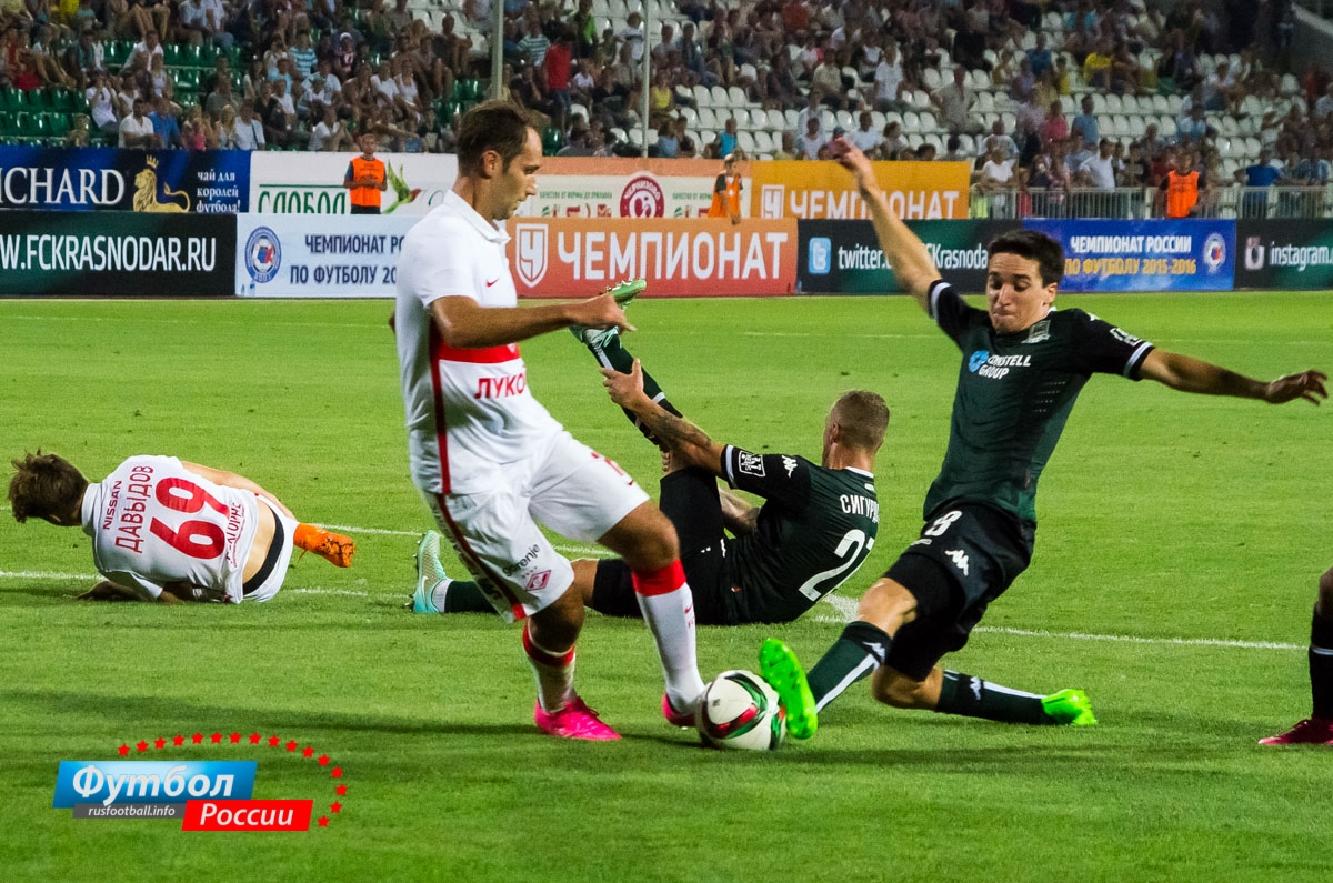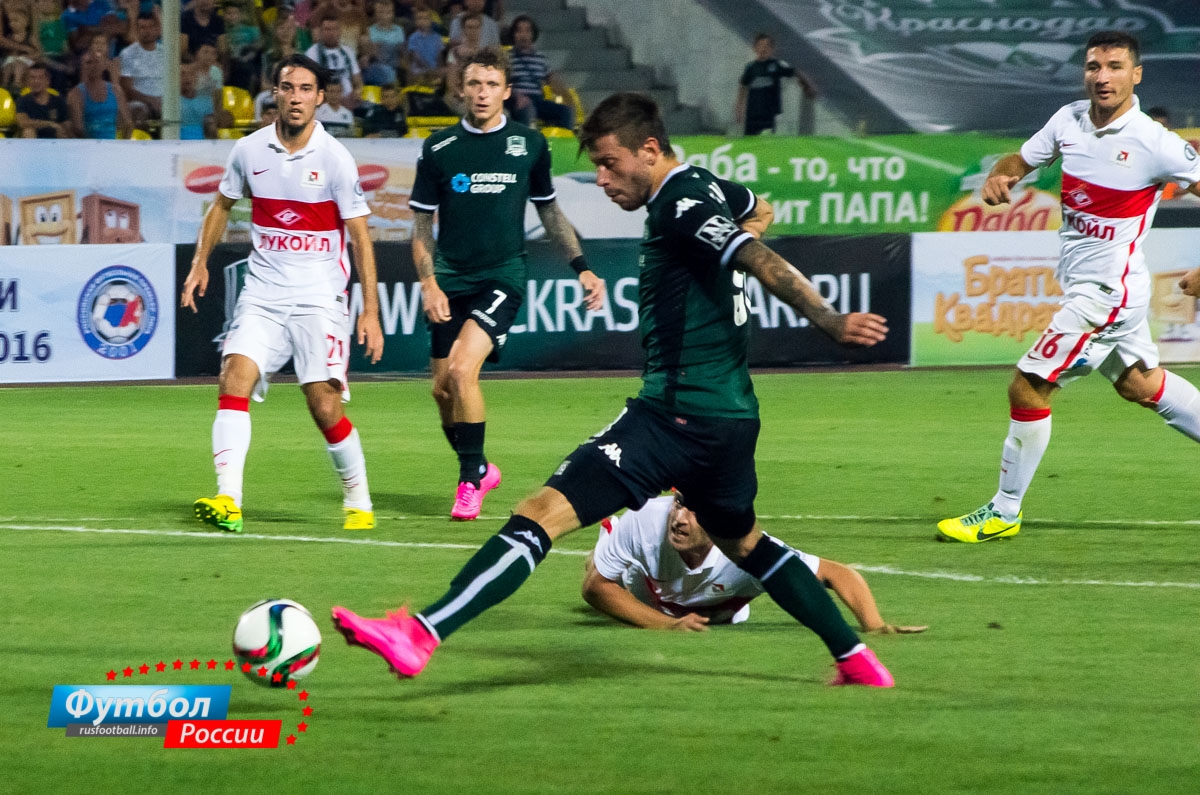 "Краснодар" - "Спартак": фотоотчет матча 27 июля 2015 08:26 В матче второго тура чемпионата России ФК "Краснодар" на стадионе "Кубань" принимал столичный "Спартак" (0:1). Rusfootball.info представляет фотоотчет встречи. Rusfootball.info Подписывайтесь на новости футбола от Rusfootball.info в Telegram, Яндекс.Новостях и Гугл.Новостях. Все главные и интересные новости тут Гугл.Новости Яндекс.Новости Телеграм Спартак Краснодар