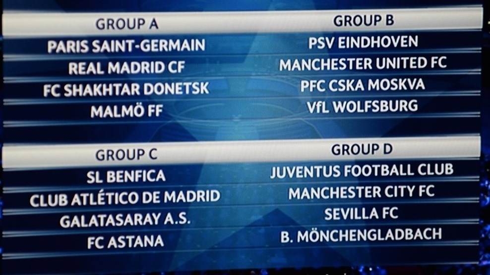 Полная картина лигочемпионских групп выглядит так. Очевидно, что нашим украинским соседям не очень повезло. "Шахтеру" предстоит сразиться с "ПСЖ" и с "Реалом", а "Динамо" из Киева с "Челси" и "Порту". "БАТЭ" так и вовсе угодил к трем грандам европейского футбола - "Барселоне", "Роме" и "Байеру". "Астана" в этой ситуации может чувствовать себя комфортнее других. У нее в соперниках "Бенфика", "Атлетико" и "Галатасарай".