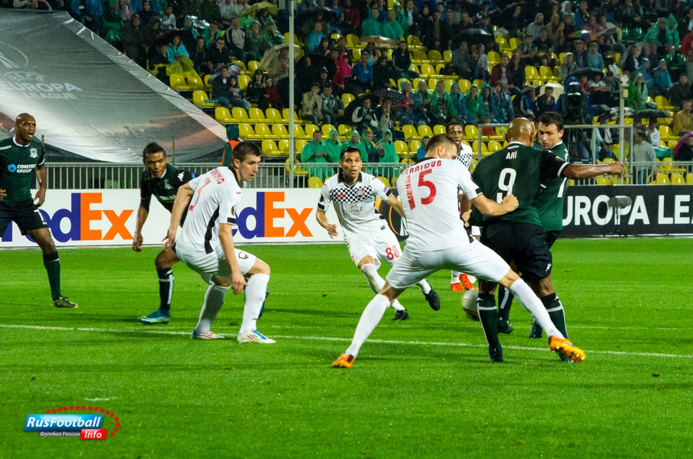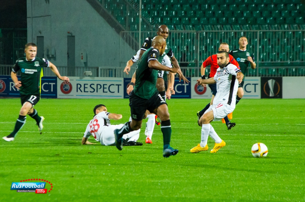 "Краснодар" - "Габала": фотоотчет матча 2 октября 2015 08:50 В матче 2-го тура группового этапа Лиги Европы "Краснодар" принимал азербайджанскую "Габалу". Встреча завершилась со счетом 2:1 в пользу российской команды. Предлагаем Вашему вниманию фотоотчет матча. Rusfootball.info Подписывайтесь на новости футбола от Rusfootball.info в Telegram, Яндекс.Новостях и Гугл.Новостях. Все главные и интересные новости тут Гугл.Новости Яндекс.Новости Телеграм Краснодар
