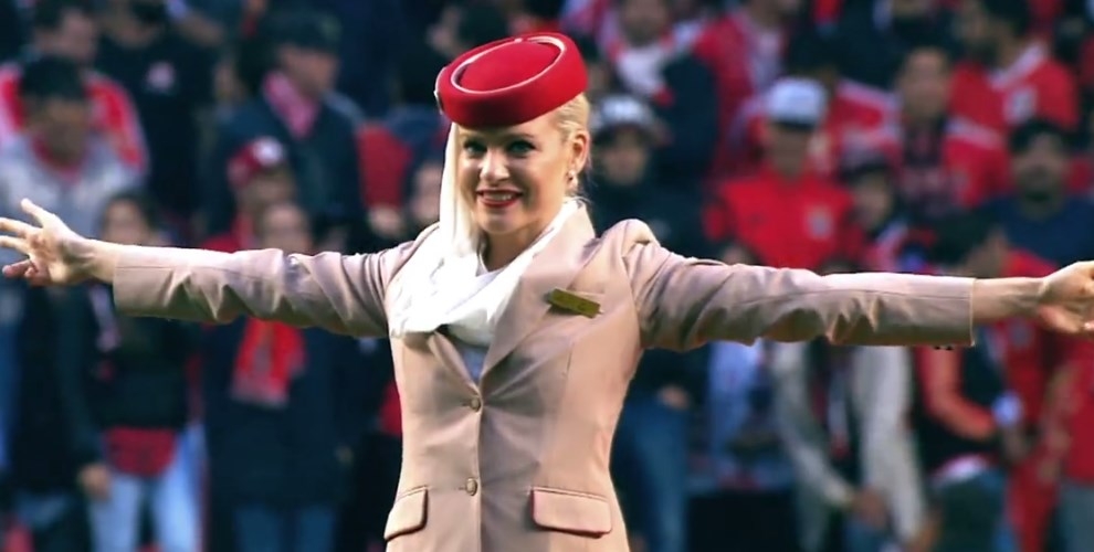 Финансовый партнер "Бенфики" компания Fly Emirates перед домашним матчем чемпионата Португалии со "Спортингом" (0:3) организовала необычное шоу с участием девушек из авиакомпании.