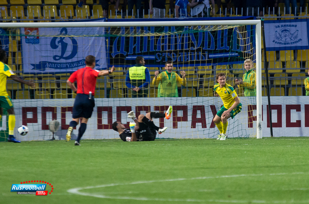 Нападающий "Кубани" Роман Павлюченко во время матча 29 тура чемпионата России по футболу "Кубань" - "Динамо" забил свой сотый гол в Российской футбольной премьер-лиге за карьеру