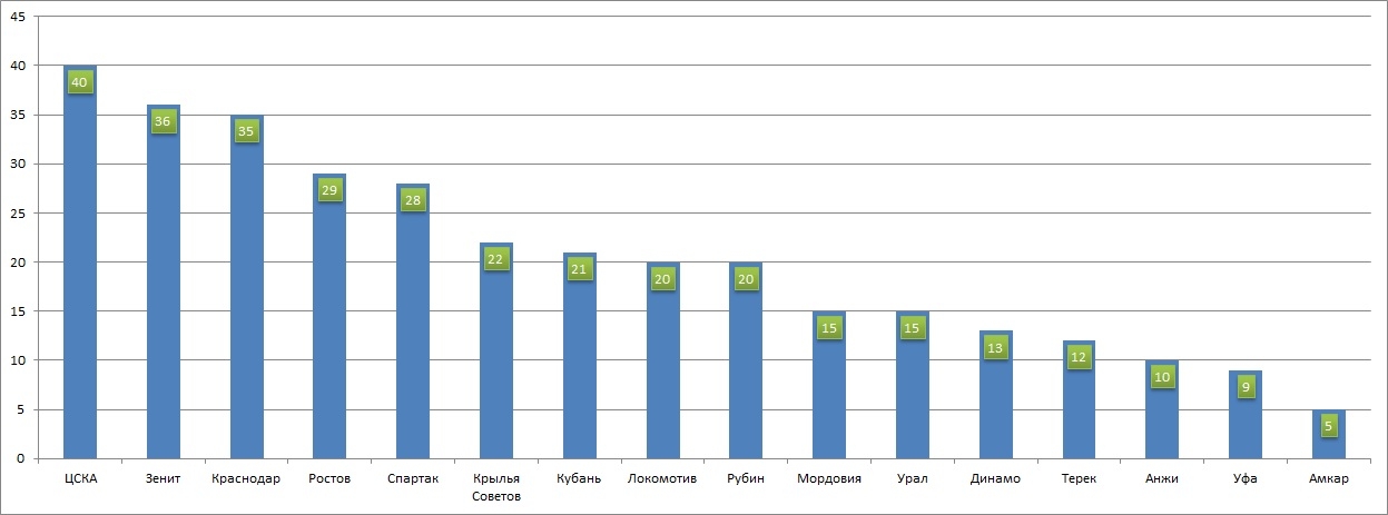После каждого тура Rusfootball.info определял 11 наиболее круто отыгравших футболистов, а вы выбирали из них лучших. Настало время подвести итоги сезона и запустить итоговое голосование за звание самого ценного, самого полезного и самого отличившегося игрока прошедшего чемпионата.Для начала обратимся к статистике попаданий в нашу символическую сборную. Чаще всего в ней оказывались будущие чемпионы - игроки ЦСКА, а реже всего - представители пермского "Амкара". Любопытно, что вылетевшие напрямую "Мордовия" и "Динамо" делегировали своих футболистов не меньше, чем, например, шедший весь турнир в первой восьмерке "Терек".