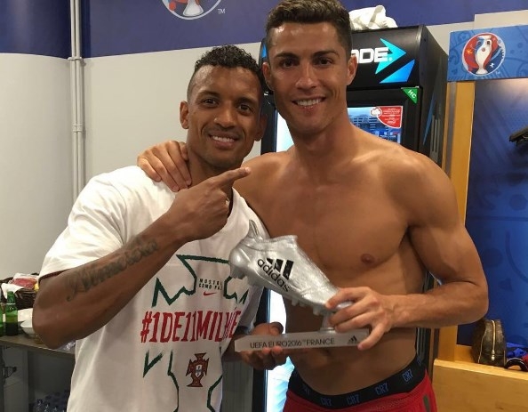 Криштиану Роналду подарил Нани "Серебряную бутсу" (фото) 11 июля 2016 09:57 Полузащитник сборной Португалии Нани поблагодарил капитана команды Криштиану Роналду за то, что тот подарил ему "Серебряную бутсу". Напомним, футболист был награжден после победы в финале Евро-2016 над Францией (1:0)."Ты больше, чем капитан, ты – чемпион! Спасибо за подарок! Вперед, Португалия! Мы - чемпионы!" - написал Нани в Инстаграме.Напомним, Роналду отметился на турнире 3 голами и 3 результативными передачами. На счету Нани – 3 забитых мяча и один ассист. "Золотая бутса" была вручена нападающему сборной Франции Антуану Гризманну, который отличился 6 раз и дважды помог забить партнерам. Подписывайтесь на новости футбола от Rusfootball.info в Telegram, Яндекс.Новостях и Гугл.Новостях. Все главные и интересные новости тут Гугл.Новости Яндекс.Новости Телеграм Криштиану Роналду Луиш Нани Сборная Португалии Публикация: Нашли ошибку в статье? Напечатать | 5 +21