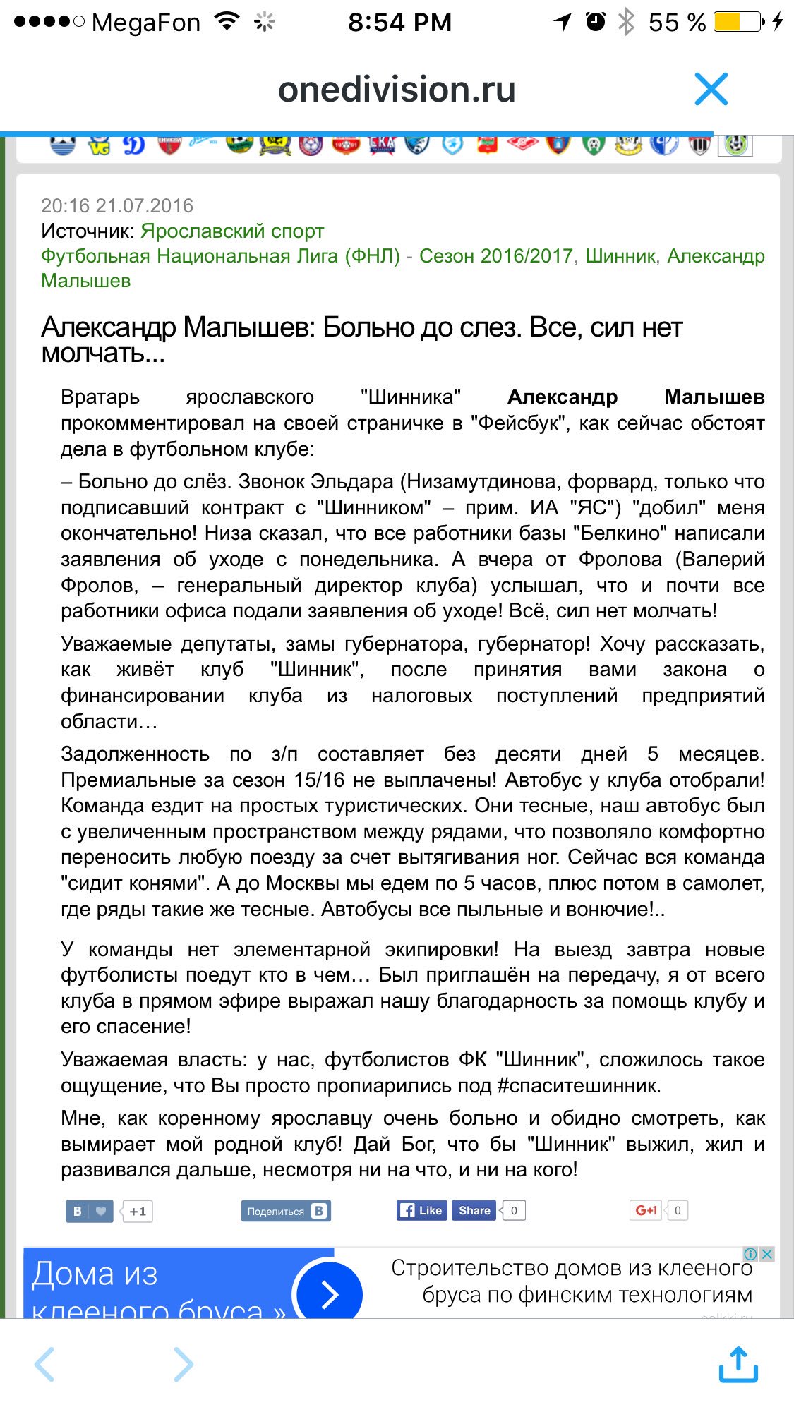Еще неделю назад вратарь ярославского "Шинника" Александр Малышев в своем Facebook делился тем, в каких условиях при отсутствии финансирования живет команда. Говорил, что многие сотрудники клуба написали заявления об увольнении. Спустя несколько дней на крик души голкипера нашелся отклик. У "Шинника" наконец-то появится хоть какое-то финансирование. Спонсором стала строительная компания "Агрострой" во главе с кандидатом в депутаты Андреем Воробьевым. Это и пугает многих болельщиков, которые думают, что это элементарный пиар-ход кандидата и о команде забудут после выборов.