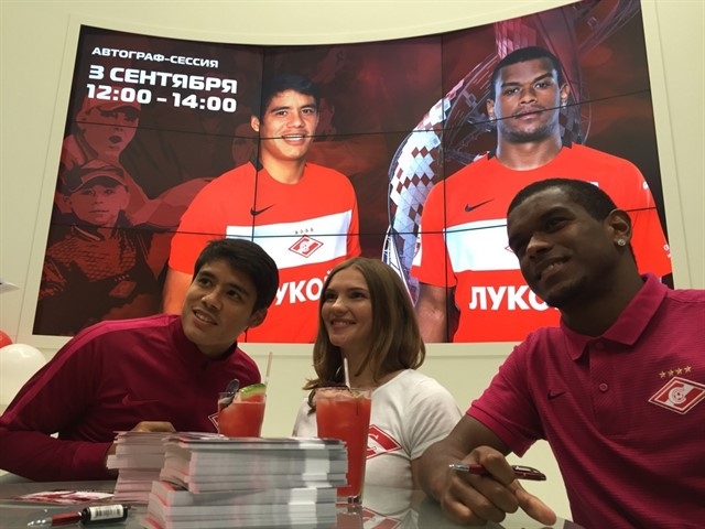 Футболисты "Спартака" Лоренсо Мельгарехо и Фернандо в эти минуты раздают автографы в Экспоцентре. На встречу пришло более 150 болельщиков красно-белых, передает "Чемпионат".