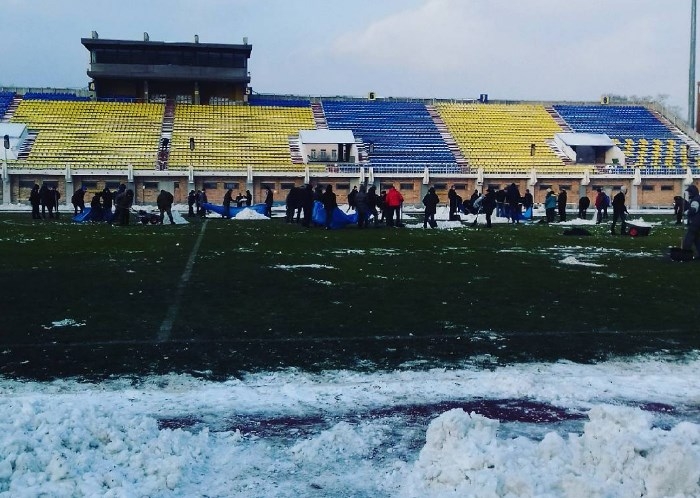 Перед матчем 20-го тура первенства Футбольной национальной лиги "Луч-Энергия" - "Кубань" поле стадиона помогали очищать от снега болельщики. Напомним, начало встречи было перенесено с 9:00 мск на 12:00 из-за того, что поле занесло снегом.