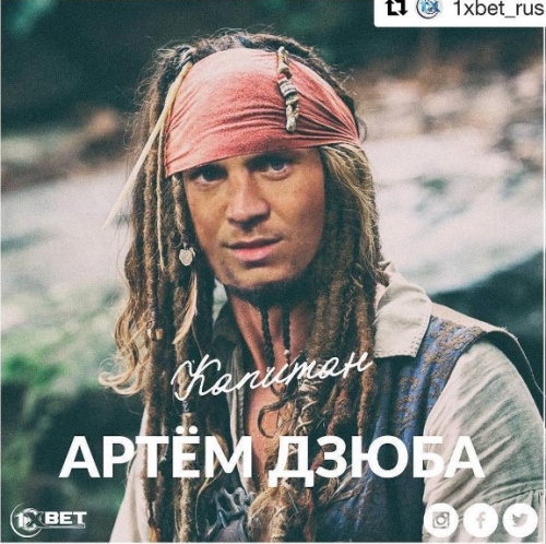 Нападающий Артем Дзюба, назначенный вчера капитаном "Зенит" предстал в образе киногероя Джека Воробья. Футболист выложил обработанное изображение в Инстаграме.
