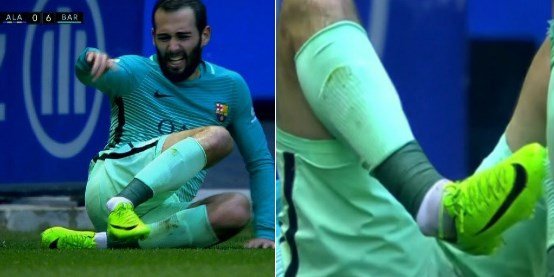 Защитник "Барселоны" Алеиш Видаль получил тяжелую травму в матче 22-го тура чемпионата Испании против "Алавеса" (6:0).