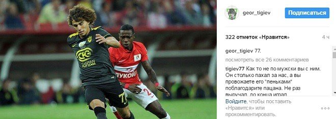 Георгий Тигиев выложил фото с игры против "Спартака"