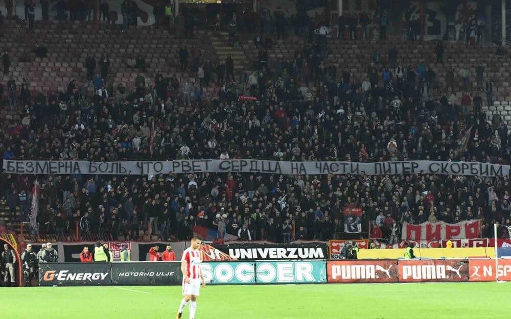 На матче Кубка Сербии между "Црвеной Звездой" и "Младостью" болельщики команд почтили память жертв теракта в метро Санкт-Петербурга, информирует RT.