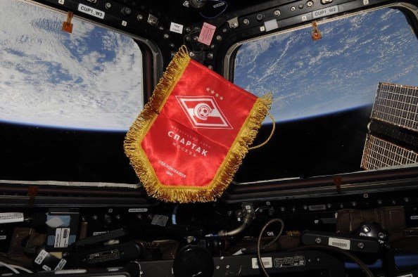 Космонавт Сергей Рязанский опубликовал фотографию вымпела московского "Спартака" на фоне панорамы космоса.