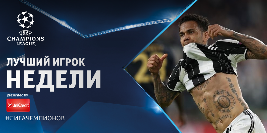 Дани Алвес признан лучшим игроком недели в Лиге чемпионов 12 мая 2017 15:41 Футболист "Ювентуса" Дани Алвес признан лучшим игроком недели в Лиге чемпионов, информирует твиттер УЕФА.Напомним, в ответном матче против "Монако" бразильский защитник отметился голом, поразив ворота соперника ударом с лета из-за штрафной. Подписывайтесь на новости футбола от Rusfootball.info в Telegram, Яндекс.Новостях и Гугл.Новостях. Все главные и интересные новости тут Гугл.Новости Яндекс.Новости Телеграм Дани Алвес Ювентус