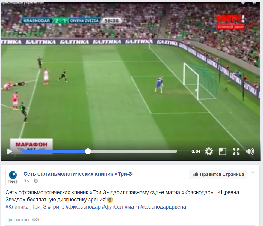 Краснодарская Сеть офтальмотологических клиник на официальном странице компании в социальной сети Facebook заявила о том, что они дарят главному арбитру первого матча плэй-офф Лиги Европы "Краснодар" - "Црвена Звезда" бесплатную диагностику зрения.