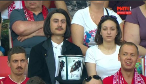 Во время прямой трансляции игры 7-го тура между "Спартаком" и "Локомотивом" на "Матч ТВ" в кадре четырежды появился человек в образе великого русского писателя Николая Васильевича Гоголя.