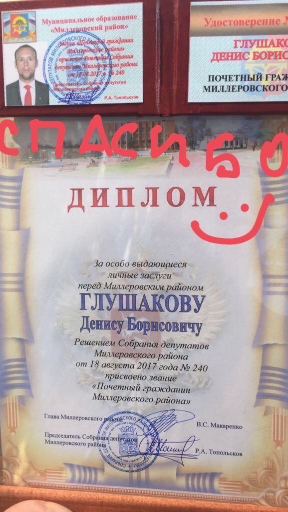 Денис Глушаков стал Почетным гражданином Миллеровского района 26 августа 2017 17:29 Полузащитник "Спартака" Денис Глушаков в инстаграме сообщил, что получил звание "Почетного гражданина Миллеровского района". Звание было присвоено ему с формулировкой "За особо выдающиеся личные заслуги перед районом". Подписывайтесь на новости футбола от Rusfootball.info в Telegram, Яндекс.Новостях и Гугл.Новостях. Все главные и интересные новости тут Гугл.Новости Яндекс.Новости Телеграм Денис Глушаков Публикация: Дмитрий Кондратьев Нашли ошибку в статье? Напечатать | 2 +6