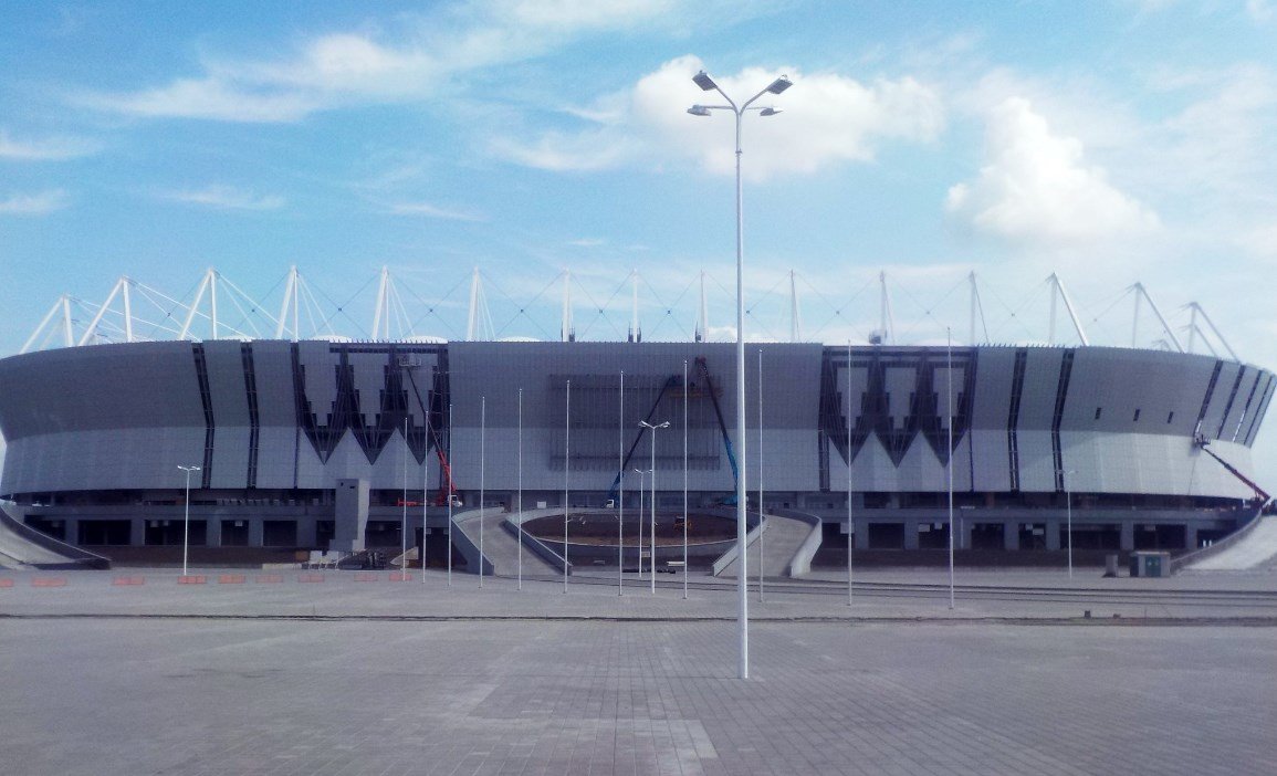 На "Ростов Арене" начался монтаж первого информационного табло (фото) 12 сентября 2017 12:51 На стадионе ЧМ-2018 в Ростове-на-Дону началась установка первого информационного табло. Монтаж второго начнётся в ближайшие 10 дней, передает официальный сайт "Спорт-Инжиниринг". Также на арене ведется монтаж сидений синего цвета, продолжаются работы по остеклению, благоустройству, прокладка инженерных сетей внутри стадиона. Устройство наружных инженерных сетей (электроснабжение, водоотведение, водоснабжение, теплоснабжение, слаботочные сети) полностью завершено. Подписывайтесь на новости футбола от Rusfootball.info в Telegram, Яндекс.Новостях и Гугл.Новостях. Все главные и интересные новости тут Гугл.Новости Яндекс.Новости Телеграм Ростов