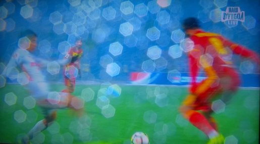 Но прежде всего бросался в глаза не состав «Спартака» (в нём ещё и Комбарова теперь нет), не долгожданное появление Педро Роши, а условия, в которых проходил матч. Они бросались в глаза просто потому что камеру порой заливало. Во время одной из опасных атак «Спартака» было просто не видно, где мяч. Кстати, мячи поменяли на жёлтые, но проблем телепоказа это решить не могло: оператору впору было прямо в разгар наступления брать тряпочку и протирать её, всё как на старых-добрых осенних трансляциях ФНЛ.