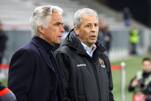 За разминкой своей команды Люсьен Фавр наблюдал в компании с президентом клуба Жан-Пьером Ривьером