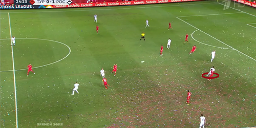 Грамотный прессинг, интересный план с перегрузом левого фланга обороны турков и высокая интенсивность действий на каждом участке поля с минимальным количеством брака даже в атакующих действиях – все эти элементы игры присутствовали в первом тайме в исполнении сборной России. Если исключить во многом случайный пропущенный гол из-за секундной потери концентрации при быстром розыгрыше штрафного, это был, пожалуй, лучший тайм в исполнении сборной под руководством Станислава Черчесова (если брать именно качество игры).