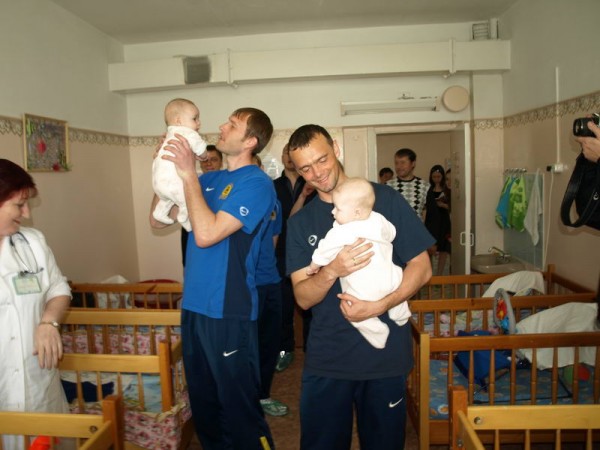 К малышам приехали новый наставник основного состава Константин Емельянов, начальник команды Андрей Скорочкин, футболисты Дмитрий Кудряшов, Андрей Чичкин, Эдуард Мор, Александр Данцев и Артем Михеев, администраторы Дмитрий Безняк и Алексей Фищенко. С собой представители клуба привезли японские подгузники и большой пакет игрушек.