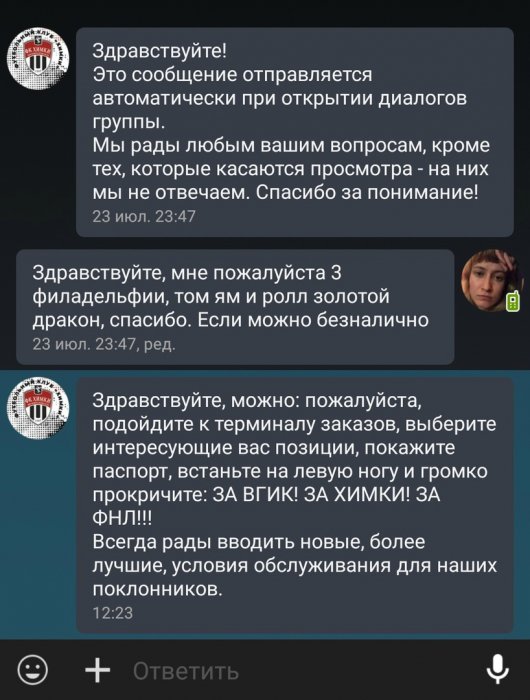 Конкурс возник не случайно: "Химки" оказались одним из клубов, кто с юмором отнёсся к флэшмобу, в рамках которого подписчики группы уже второй день мучают ведущих странички команд ВК заказами еды. Всё началось с "Сатурна".