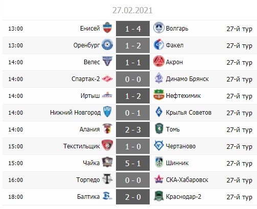 В Нижнем Новгороде состоялась встреча двух лидеров - хозяева имели гандикап в три очка, который команда Игоря Осинькина собиралась ликвидировать. Обидно, что такая статусная битва была назначена на первый после паузы тур - команды явно не в лучших кондициях, температура воздуха приближается к критической отметке, а футболистов не всегда можно различить на фоне заснеженного газона. "Крылья", которые открыли календарный год чуть раньше уверенной победой в кубковой игре, где были примерно такие же погодные условия, были чуть острее и на поле лидера. Героем встречи стал полузащитник самарцев Ежов, который в первом тайме мощным ударом сотряс перекладину, а ближе к концу встречи после передачи Зиньковского пробил неотразимо. 0:1 - "Крылья" выходят на первое место, опережая "Нижний" благодаря двум победам в очных поединках, и сложно представить, что Самара пролетит мимо РПЛ.