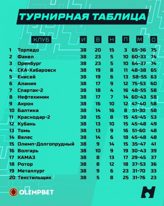 Воронежский "Факел" спустя 21 год вернулся в элитный дивизион российского футбола, и кто теперь вспомнит, что трижды кряду "огнеопасные" занимали места в зоне вылета, оставаясь в ФНЛ не по спортивному принципу. Но с приходом Романа Асхабадзе и Олега Василенко дела в Воронеже пошли на лад, и нынешняя команда действительно заслужила оказаться в топ-2. При этом в РФС до последнего тянули с объявлением решения по лицензии для "Факела", хотя все инсайдеры уже несколько дней трубили о том, что Центральный стадион профсоюзов под губернаторские гарантии к РПЛ будет допущен. В последнем туре "факелоны" гостили в Калининграде и могли пропустить уже на 2-й минуте, однако перешедший из "Рубина" (какая ирония) голкипер Городовой вытащил тяжелейший мяч после удара Мусаева. Единственный гол гости забили в начале второго тайма - Магаль навязал борьбу на чужой половине поля, Акбашев снаряд подобрал и шикарным дальним ударом застал врасплох Латышонка. "Факел" занимает второе место и становится лучшей домашней командой турнира - с такой зрительской поддержкой визит в столицу Черноземья будет сложным для любого гранда РПЛ. "Балтика" же завершает сезон на десятой позиции, из-за меньшего количества побед пропуская вверх сразу 3 клуба, набравшие столько же очков.