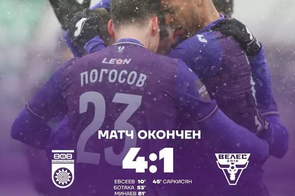 Голы Евсеева и Минаева помогли "Уфе" разгромить "Велес" и покинуть зону вылета Первой лиги