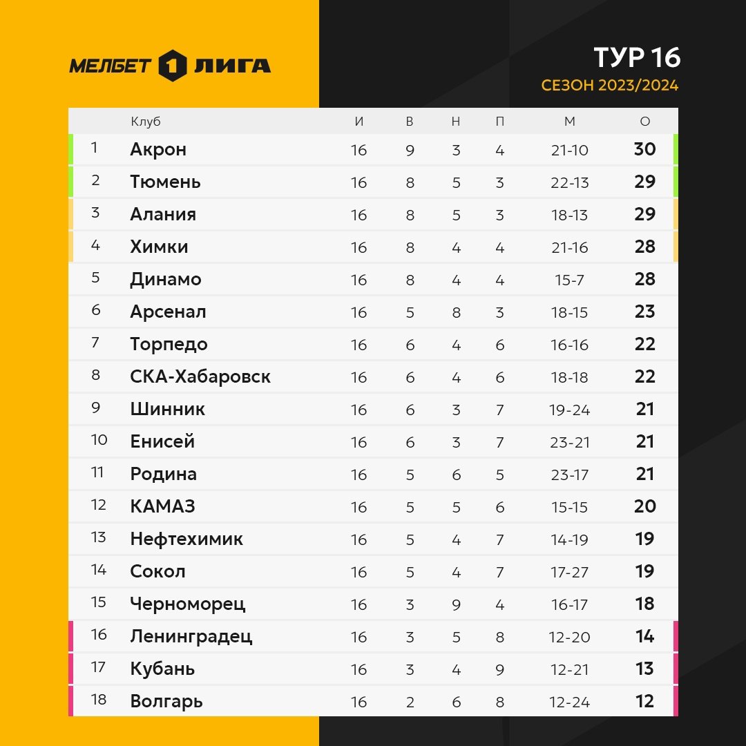Лидерство "Акрона" и невероятный успех "Тюмени". Обзор 16-го тура Первой лиги