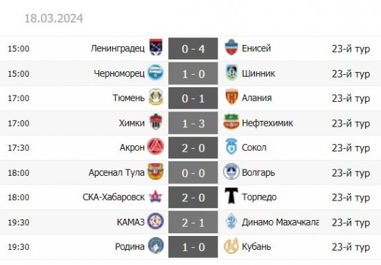 Лидерские амбиции "Химок" пошатнул великолепный "Нефтехимик", "Акрон" обошел двух конкурентов, потерявших очки, а "Родина" благодаря очередному голу Тимошенко уже на расстоянии одной победы от топ-4.