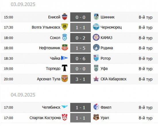 "Челябинск" и "Факел" обменялись голами в добавленное время, "Спартак" не уступил "Уралу", Калмыков принес "Арсеналу" волевую победу, а "Родина" и "Ротор" обновили рекорд результативности сезона.